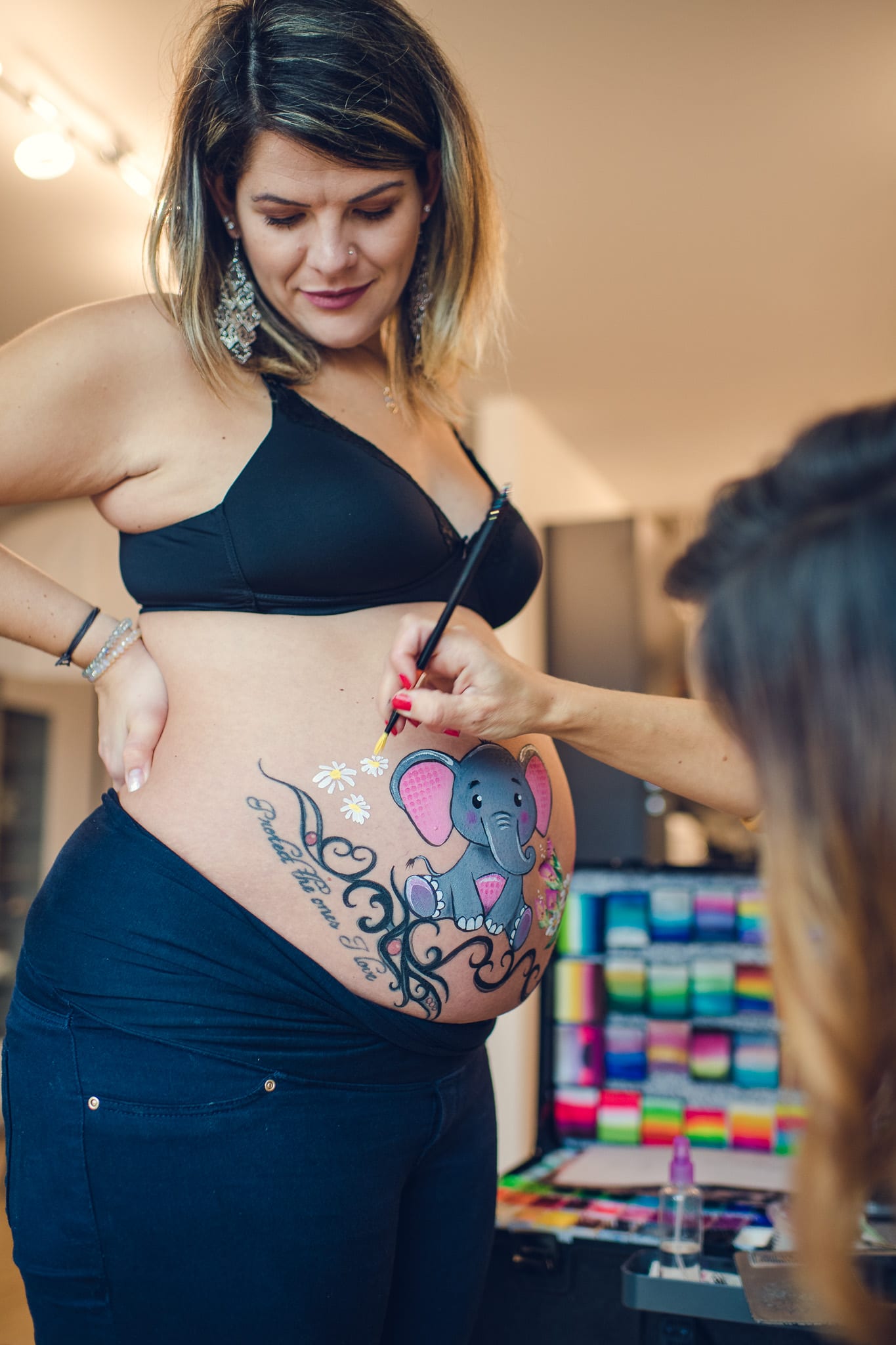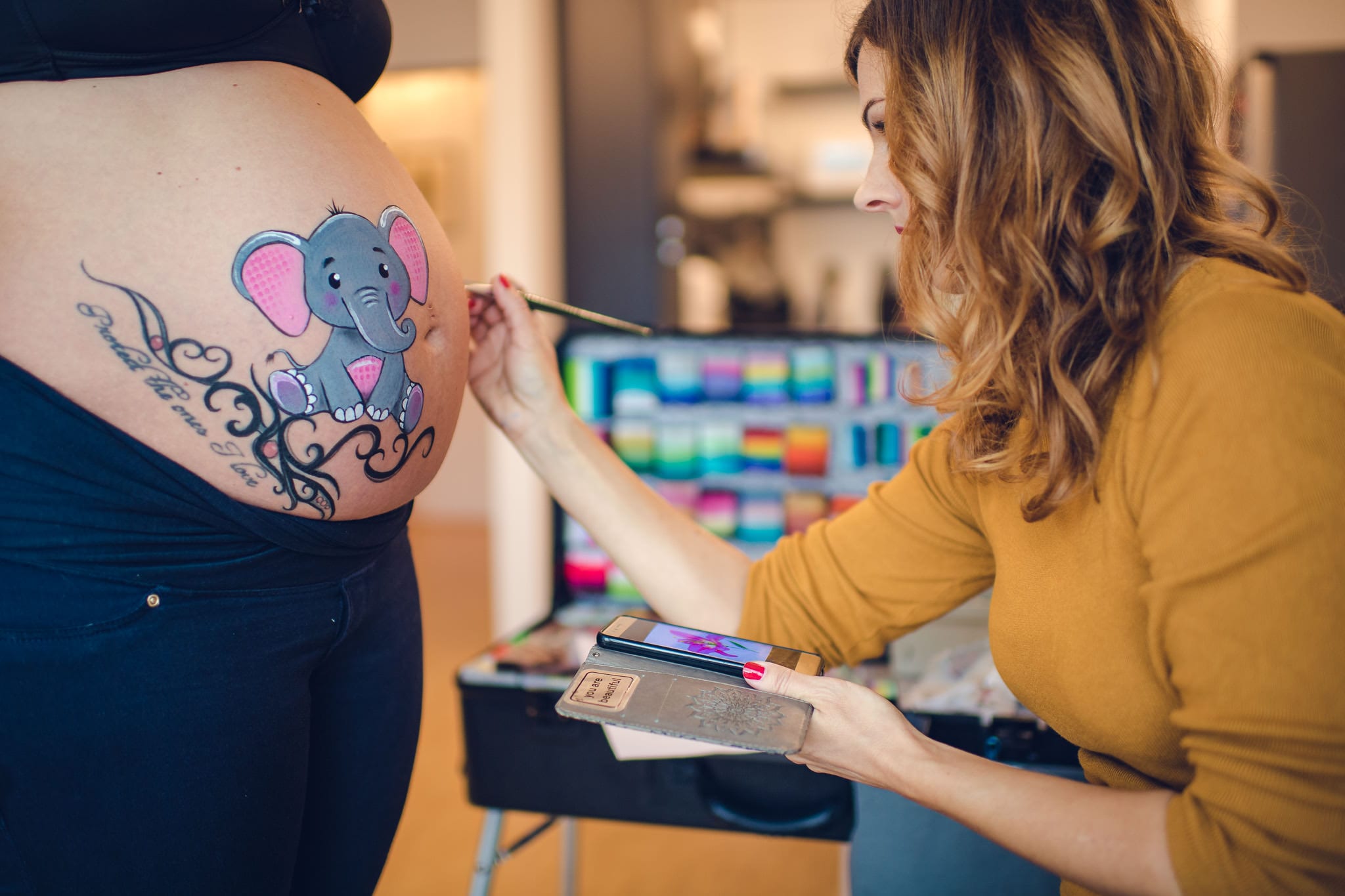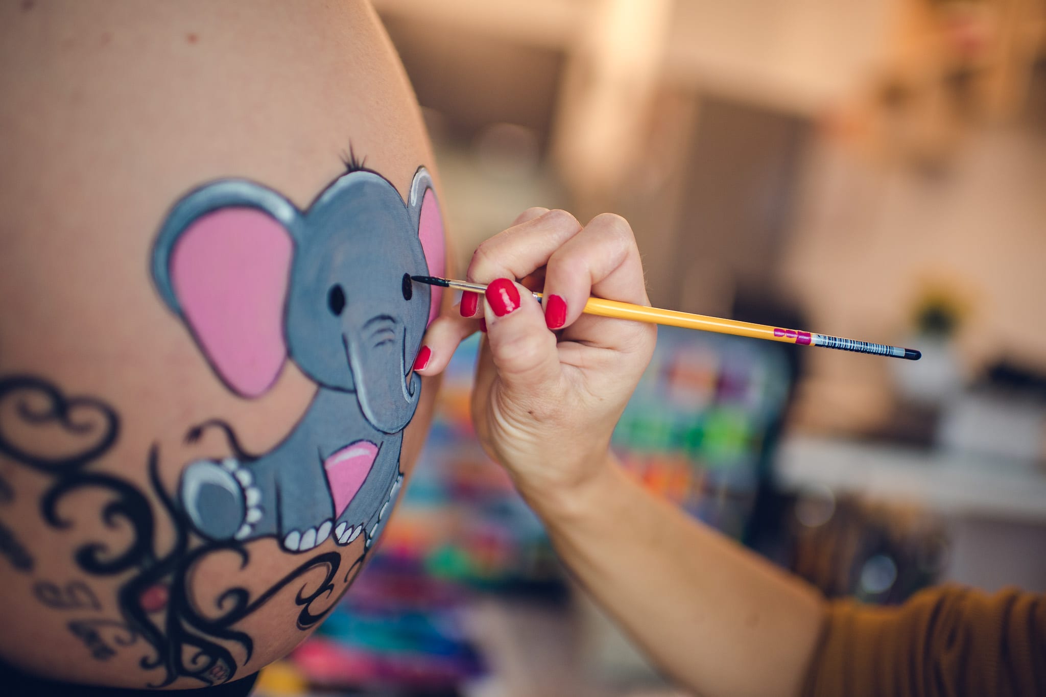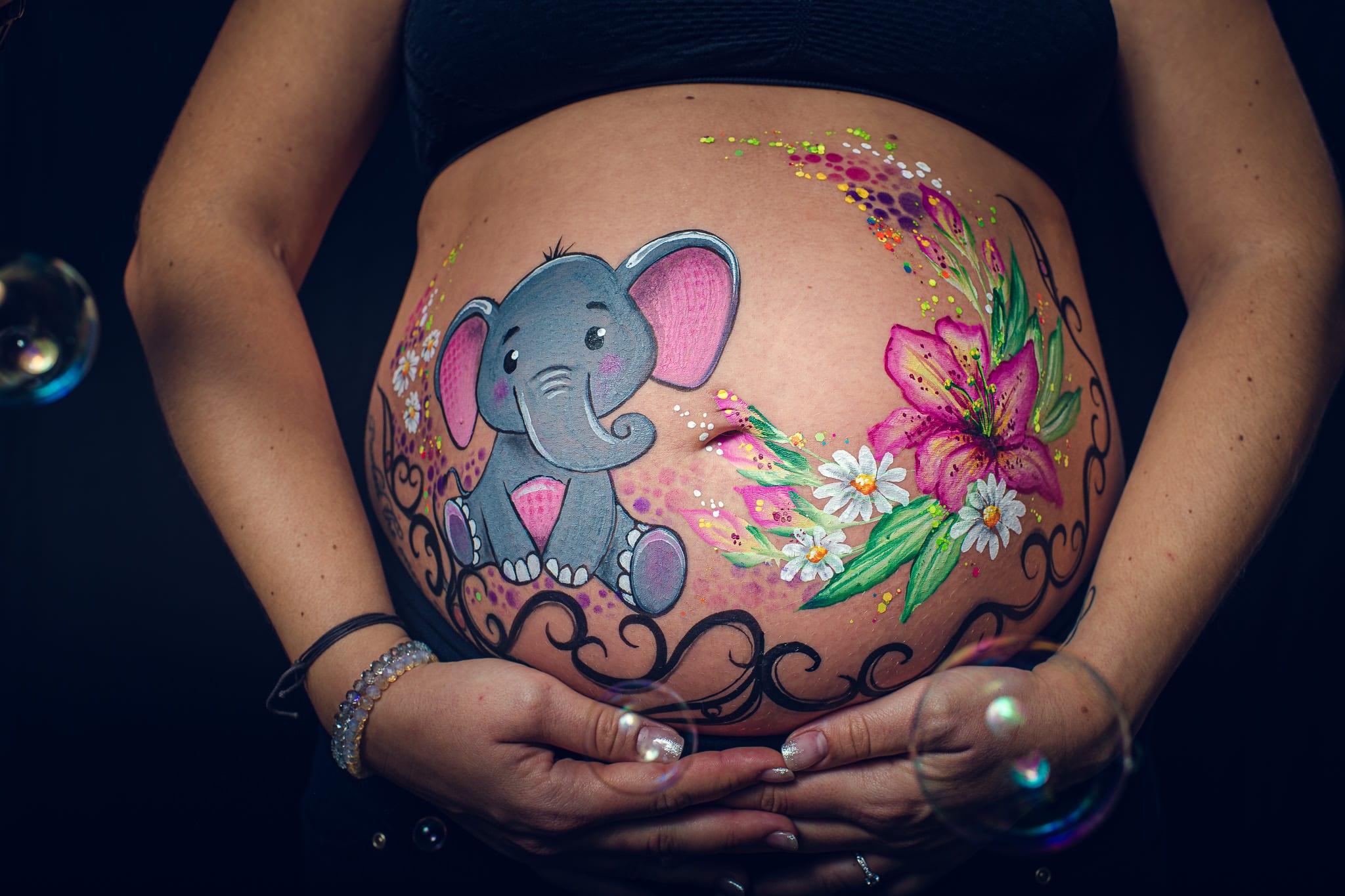 Eine andere und besondere Art des Babybauchshooting ist das Kreieren eines Bodypaintings.