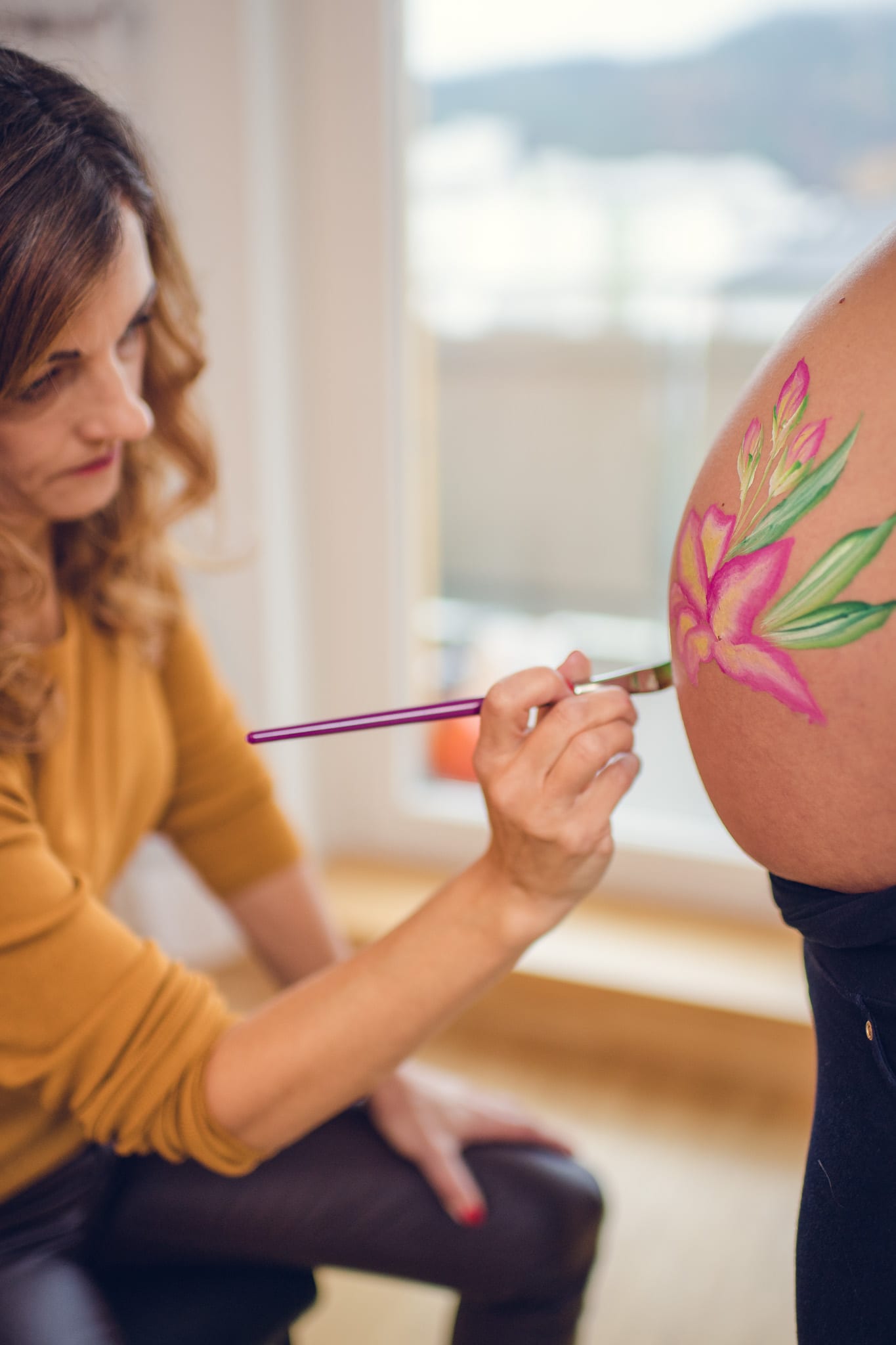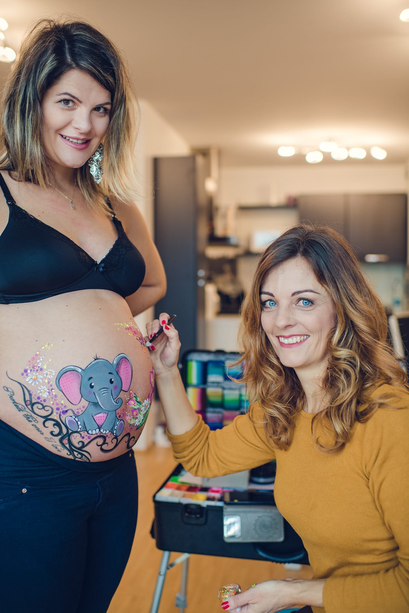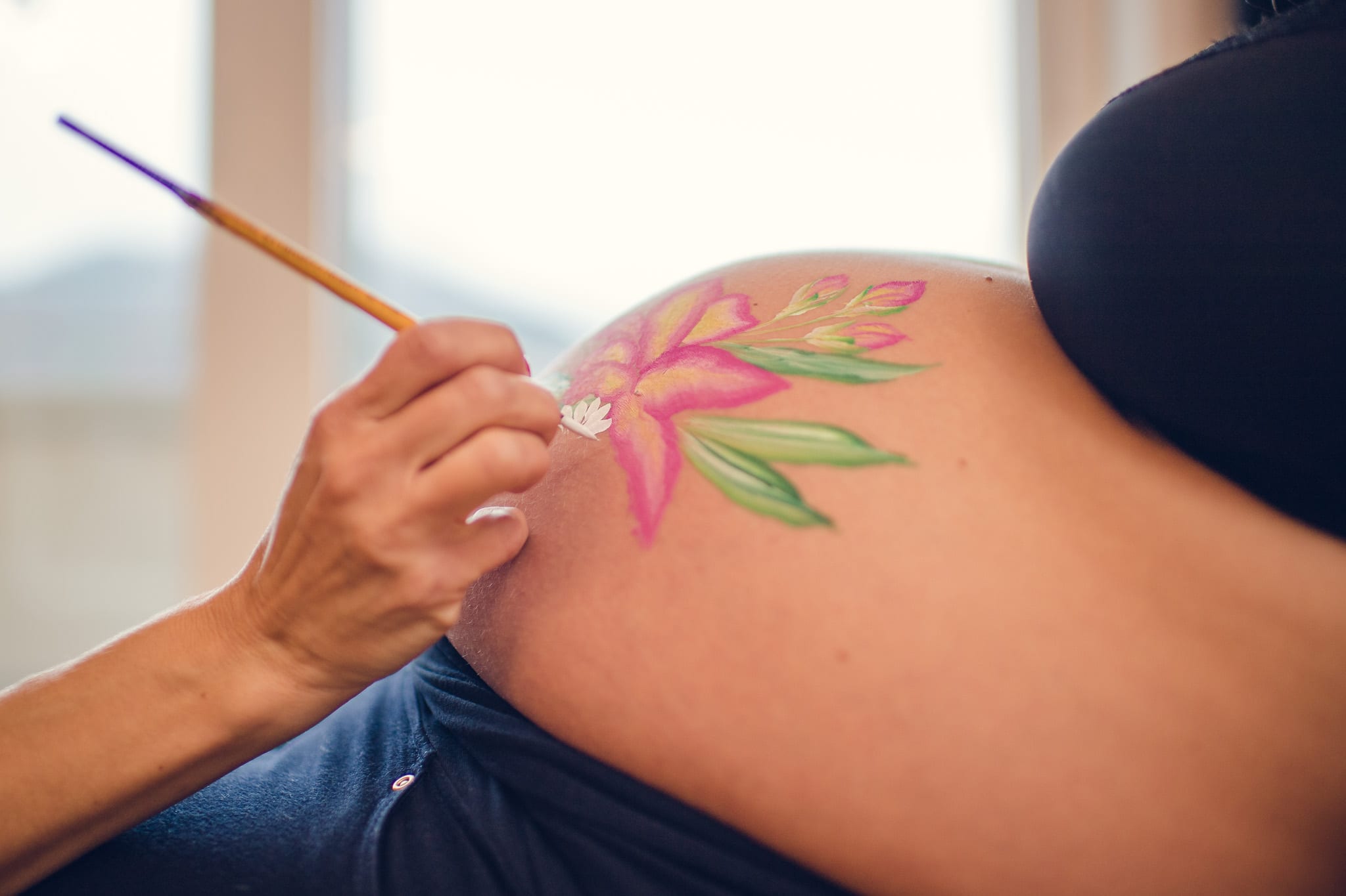 Solche Babybauch-Bodypainting-Shootings können dann Outdoor, Indoor, im Studio oder aber auch bei Euch zuhause gemacht werden.