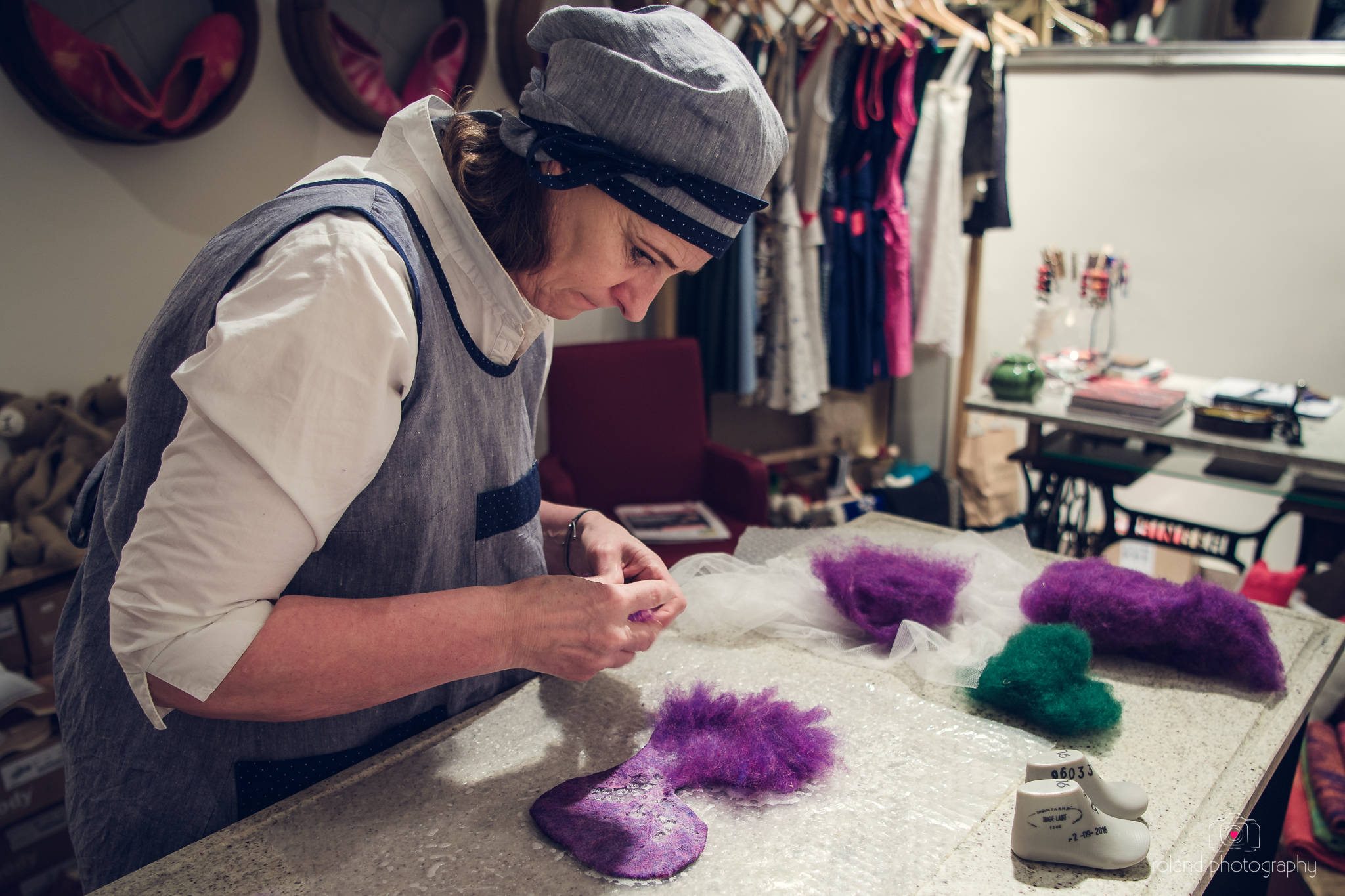 In einer kleinen aber feinen Manufaktur stellt DAGI selbst diese Patschen her. Wenn man Glück hat, dann erwischt man sie gerade bei einer solchen Produktion, wenn sie sich nicht gerade um Kunden kümmert, in Ihrem feinen Geschäft. Der romantische Innenhof trägt seines dazu bei, dass man sich gleich wohl und Zuhause fühlt.